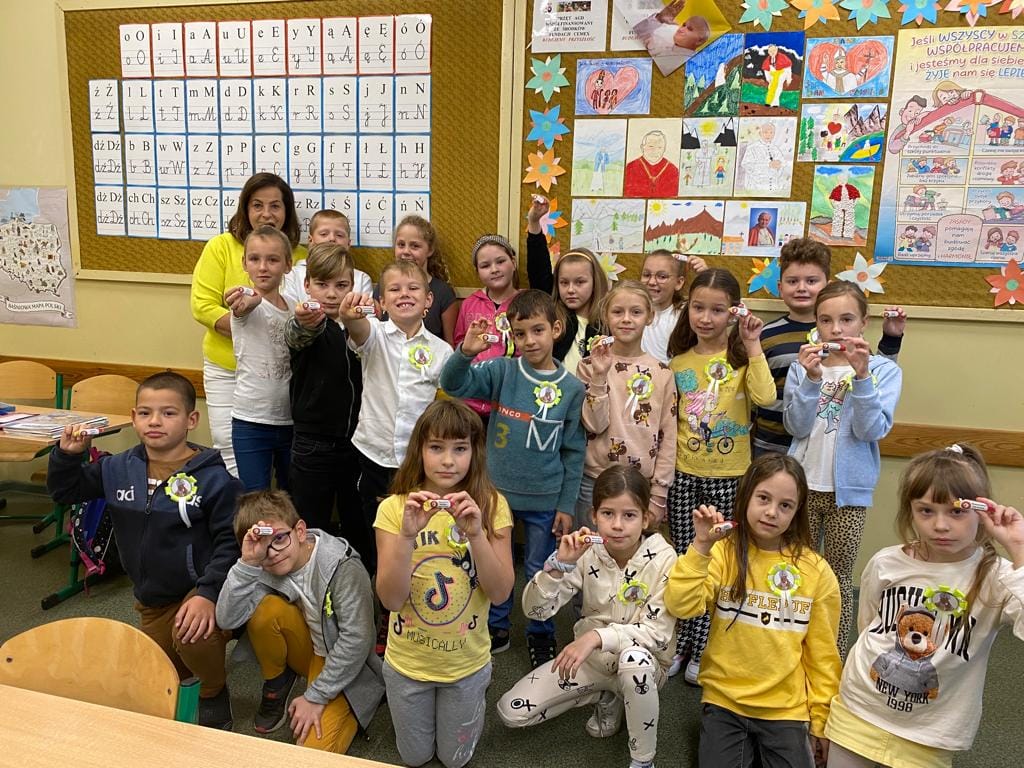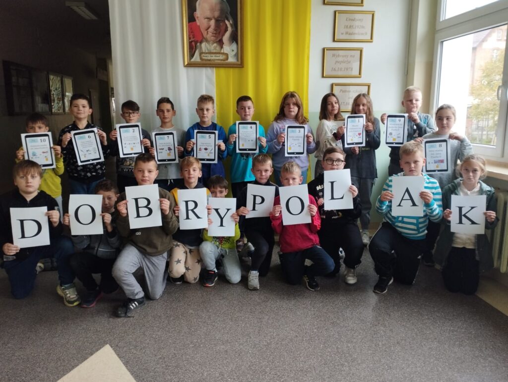 W dniach 17-20 października z okazji XXII Dnia Papieskiego i 44 rocznicy wyboru Karola Wojtyły na papieża, w naszej szkole odbyły się podchody papieskie. Konkurs został przeprowadzony w klasach 4 i 5. Dzieci miały za zadanie odszukać na terenie szkoły dziesięć zagadek w formie rebusów związanych z życiem świętego Jana Pawła II. Podchody dostarczyły uczniom wiele radości podczas odgadywania kolejnych liter z hasła – DOBRY POLAK. Wszyscy zgodnie przyznali, że świetnie się przy tym bawili.