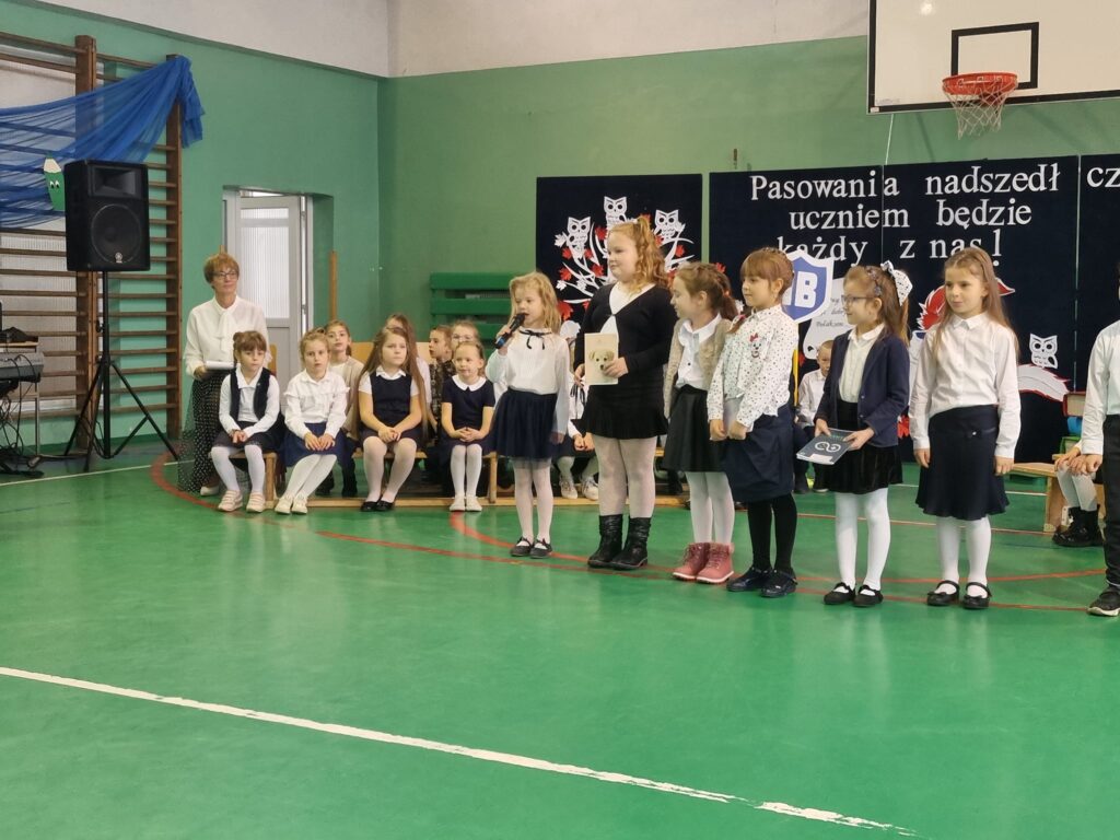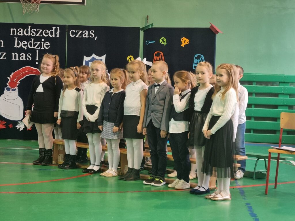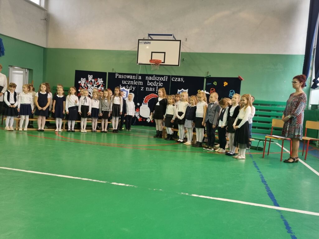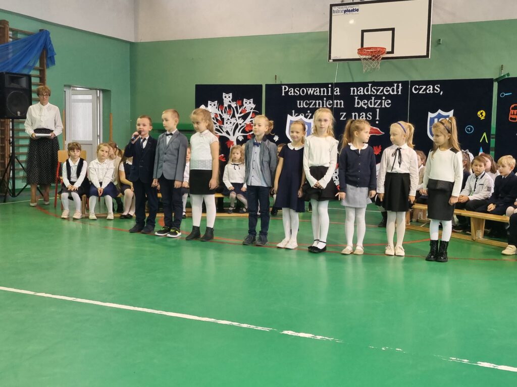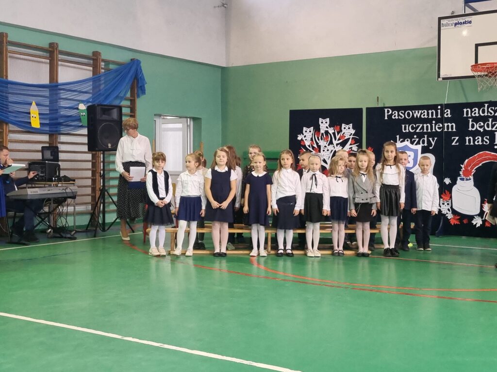 Dzisiaj odbyła się w naszej szkole uroczystość pasowania na ucznia. Jest to szczególny dzień, który na długo pozostanie w pamięci każdego ucznia klasy pierwszej. W tym dniu dzieci oficjalnie przyjęte zostały do grona uczniów szkoły. Podczas uroczystości pierwszoklasiści pokazali, że potrafią pięknie śpiewać i recytować wiersze. Najważniejszą częścią uroczystości, na którą wszyscy czekali było ślubowanie oraz pasowanie ołówkiem przez Dyrektora Szkoły Pana Krystiana Latoszewskiego. Pierwszaki głośno i z przekonaniem przyrzekały być dobrymi i pilnymi uczniami oraz rzetelnie wypełniać swoje obowiązki, o czym przypominać im będą otrzymane dyplomy ufundowane przez Radę Rodziców. Wszystkim pierwszoklasistom w tak ważnym dla nich dniu życzymy wielu sukcesów na nowej drodze obowiązków szkolnych.