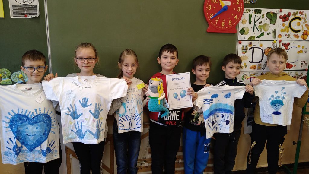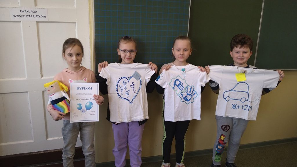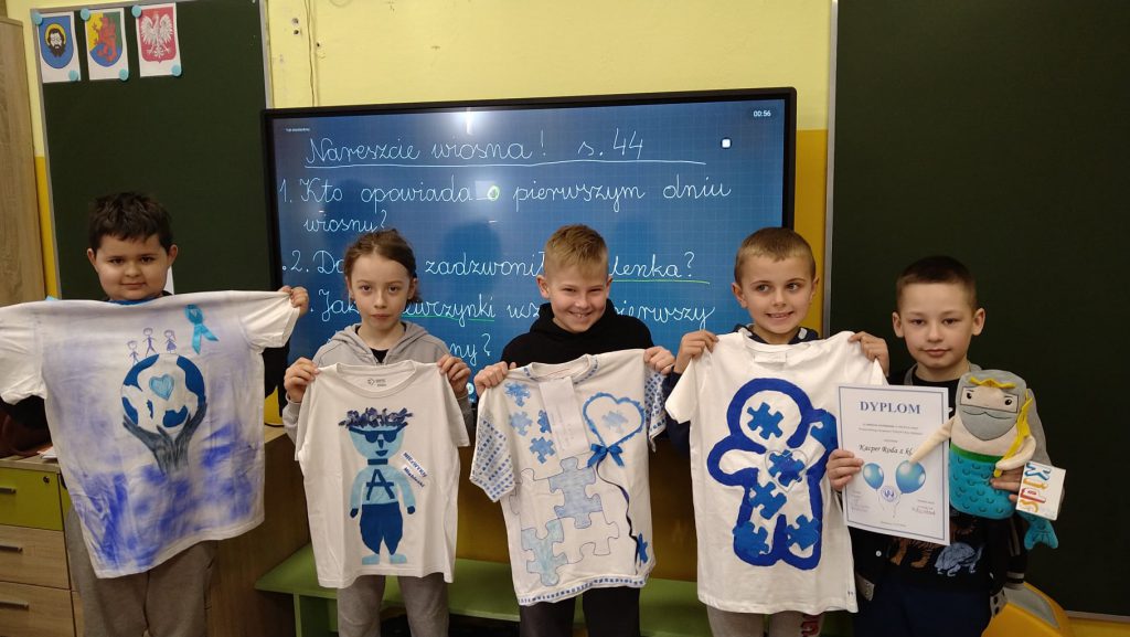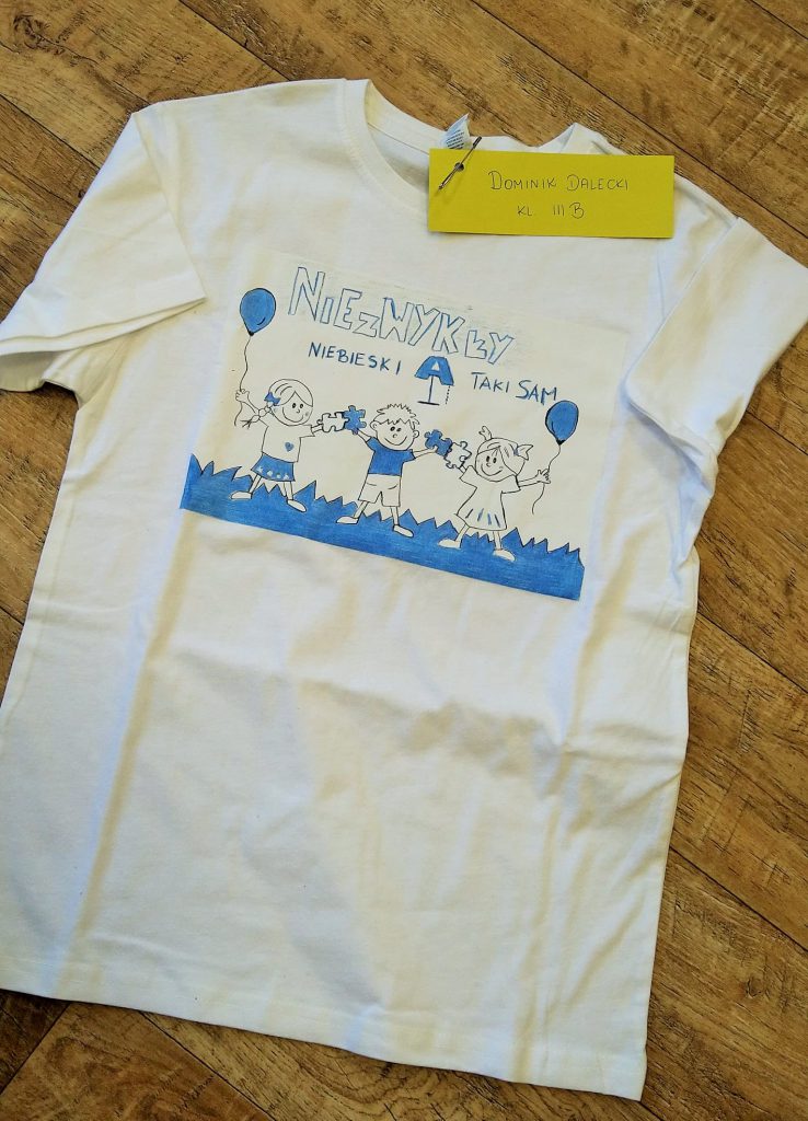 2 kwietnia obchodzimy Światowy Dzień Świadomości Autyzmu. Na znak solidarności z osobami z autyzmem uczniowie naszej szkoły „Zaświecili się na niebiesko”. Aby przybliżyć uczniom klas IV- VIII charakterystykę autyzmu – przygotowano dla nich ulotkę informacyjną. Natomiast dla uczniów klas I- III w marcu odbył się etap szkolny Wojewódzkiego Konkursu „NIEzWYKły Niebieski”. Warunkiem przystąpienia do konkursu było wykonanie projektu koszulki nawiązującej do tematu „NiEzWYKły- NIEBIESKI”. Wszystkie konkursowe prace odznaczały się dużą kreatywnością oraz pomysłowością. Wyróżniono 5 koszulek, które wezmą udział w kolejnym etapie konkursu. Wyróżnienia: Oliwia Dawicka kl. Ia, Kacper Roda kl. IIb, Zofia Beling kl. IIIb, Dominik Dalecki kl. IIIb, Marcin Wojciechowski kl. IIIc.Wszystkim uczestnikom serdecznie gratulujemy!